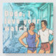 SlipperyJoes underkläder två manar tecknad övergav byggnad blue aqua red kort glass Jewelry 60's artistic gay gifts LGBTQIA