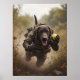 Fält Fetch-specialisten är på roligtens linjer och dykar bakom täcket i fullt kamouflage. Den ena tass griper en granat och den andra håller ett slobbery tennis boll - eftersom ingen uppdrag är fullständig utan ett fosterspel. Hans fokuserade ögon och att vrida svan säger allt: "Speltid är en seriös affär." Idealisk för fläkt av militärt humor, lojalt arbete och insatspackat äventyr.