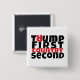 Med den här knappen kan du berätta vad du tycker om president Trump. Det är en antitrumpslogan som säger "Trump First, Land Second". Sten på jacka, väska eller var du än är! Visa världen där du står. Att gå till en demonstration, en protest, eller vill bara väcka sak? Den här knappen är din hjälp. Prata med dig, gör en påstående och låt dem höra dig!