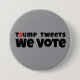 Knappen fungerar som en form av protest mot Donald Trump, tidigare president i Stater. Budskapet "Trump Tweets We Vote" är ett tydligt budskap från påstående som uttrycker oenighet och motstånd mot både hans löften från kampanj och hans uppträdande under ämbetets gång. Knappen hänvisar särskilt till Trumps upprepade löfte att "tömma träsket", ett löfte om att göra sig av med Washington D.C. från korruption och speciella intressen. Sloganen "Trump Tweets We Vote" antyder att bäraren inte godkänner Trumpens åtgärder i förhållande till detta löfte, tillsammans med andra åtgärder som vidtagits under hans ordförandeskap. Det innebär en röst som avgivits i strid mot Trumps politik och ledarskap på grundval av observationer av hans uppförande och uttalanden under hans tid som president.