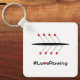 En nyckelkedja med en roligt slogan, för alla som roterar. Enkel text i svart med rött hjärta och den stiliserade bilden av en roterande åtta med hjärtan på årarna. På en vit bakgrund (eller klicka på "Anpassa" om du vill ändra detta). Lägg till en egen text, t.ex. en klubb namn. #LoveRwing