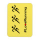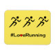 En enkel slogan i svart text med rött hjärta och ett piktogram på tre springer ovanför. Gult i bakgrunden. Perfekt till visning av ditt idrottsutövande. #LoveRunning.