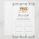 Den saktade tematiska babyduschen gissar vad som finns i det tidningsbaserade jaktkortet för påse har en vattenfärgssluttningsillustration och vattenfärgsgrey eucalyptus garland och elegant handskrivet stil-typsnitt.