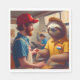 Vi presenterar vår beundransvärda snabbmatsarbetare. Vår slump är att vi med tålamod och omsorg hjälper alla kunder i deras egen takt, och det är redot. I en snabbmatsuniform är han på disken och hjälper en kund. Denna vardagliga scen, som lyfts fram med mjuk belysning, är ett bevis på talesättet - bra sak kom till dem som väntar. Denna utformning är perfekt för dem som har kärlek som slantar och snabbmat.