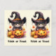 Det här söta Halloween-vykortet är designat för att enkelt kunna delas in i två kort. Bilden på ena sidan är av en leende lutning med en häxhatt för orangen. Den andra sidan har en svart kattunge sitta bredvid en jack o'lantern. Perfekt för elementär studenter till ge till deras vänner i deras skola Halloween fest, och även ekonomiskt! Lärarna kan också anpassa det till ge till studenter.
