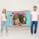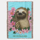 En söt slätte sitta bland rosa blommor mot en blå bakgrund