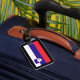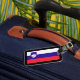Bagagemärkre av Slovenien. Denna märkre har din landflagga på den i de verkliga färgerna, och på baksidaen hänger lös allt ditt hem info för din säkerhet av ditt
