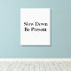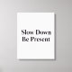 Elevate your living space with this elegant minimalist canvas print. Featuring the calming quote "Slow Down, Be Present" in a clean, modern font, this piece is perfect for creating a Zen atmosphere in your bedroom, office, or living room. It’s an ideal housewarming gift or a thoughtful piece of minimalist wall decor to encourage mindfulness. This canvas comes ready to hang and is available in multiple sizes on Zazzle. Add a touch of aesthetic calm to your home!
