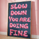 Sometimes, the reminder we need most is also the simplest. This “Slow Down You Are Doing Fine” poster delivers a message of calm reassurance through playful pink bubble lettering and a soft, modern color palette. The glossy, balloon-style typography adds a cheerful, almost tactile feel, while the muted background keeps the design grounded and soothing.