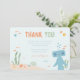 This sweet thank you card design features the lovable Slumberkins Hammerhead character in a calm, ocean-inspired setting that feels playful, heartfelt, and perfectly suited for young children. Soft pastel blues create a soothing background, while warm peach sand tones and muted green sea plants add warmth and balance. Small fish, bubbles, shells, and starfish gently frame the message, creating a whimsical underwater scene that feels cohesive and inviting. The cheerful “Thank You!” headline paired with a personalized sign-off makes the design feel thoughtful and special. Perfect for toddler and early childhood birthday celebrations, this design beautifully coordinates with an ocean- or shark-themed party while keeping a cozy Slumberkins-inspired vibe.