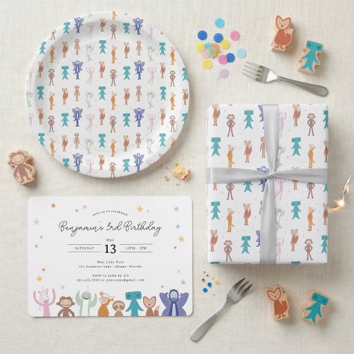 Den här glada Slumberkins-designen visar en glad uppställning av älskade Slumberkinsfigurer samlade under mjuka stjärnor och lekfulla accenter. Illustrationen använder en ljus men ändå mild färgpalett som kombinerar varma neutrala toner med inslag av pastellfärger för att skapa en glad och välkomnande atmosfär. Den balanserade layouten håller fokus på figurerna längs nederkanten samtidigt som den tydligt visar anpassningsbara födelsedagsdetaljer i en ren och modern stil. Med sin lekfulla energi och mysiga Slumberkins-charm är denna design perfekt för födelsedagsfiranden för småbarn och tidig barndom, och erbjuder ett roligt, inkluderande och hjärtvärmande utseende som familjer kommer att älska.