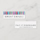 Hjälp oss att uppnå vår värld - den breda beskickningen av den fördelande kärlek och vänligheten med det slumpmässiga underbara leendet agerar av vänlighetkort. Passera dem ut till folket som du möter varje dag, gör dem att le och uppmuntra dem att betala den framåtriktat.