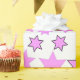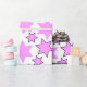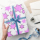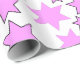 Presentpapper med min design med ljusrosa stjärnor, vissa med svart kontur, på vitt.