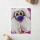 This notecard features a digitally hand painted very eager, very “slurpy” and very amazing “in-your-face-in-the-best-way” light colored furry dog. The background, barely visible, resembles a fuchsia color. Thanks for checking out my shop!
