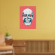 Detta är en surrealistisk och tankeväckande bild med ett mänskligt skalle i en dramatisk asfalt-grått-ton, med två skarpa stoppskyltar för gulten som täcker ögats socklar. Stoppskyltarna bromsas upp av den utdragna armen av två små figurer som kommer inifrån skallen och tillför en känsla av ren symbolik. Bakgrunden till koral- färgaden skapar en slående kontrast som ökar skallens djärvhet och stelheten i stoppsignalerna. Bilderna frammanar teman med gränser, varningar eller stopp för tankprocesser, samtidigt som de ger en visuellt övertygande balans mellan värme och svält.