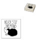 Cute-vykort med tecknad platt hand plockade-hedgehog och inspirationsindikerande citat Sluta aldrig drömma i en cirkel, ljusblå ram på vit bakgrund. | Bigstock® - Alla Höger reserverade.