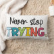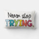 Upptäck den vackra och inspirerande lumbalkudden "Sluta aldrig slita". Lägg till lite motivation och komfort i ditt vardagsrum med det här unika och snyggt tillbehöret.