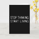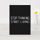 Den inspirerande och motiverande utformningen med livsmotivet eller det positiva tänkandet citerar "Sluta tänka på att börja leva".