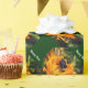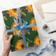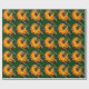 "Busy Bee" är textetiketten i vitt på en mörk grönt bakgrund som innehåller ett vinklat foto av en svart och gult "humla" som bläddrar i mitten av en orange calendula-blomma.
