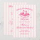 Få redo att fira den blivande bruden med en aning retro charm och flamingo roligt! Denna inbjudan till Bachelorette Helg är perfekten för att ange tonen för ett oförglömligt firande. Den här vackert designade inbjudan innehåller mjuk rosa rand i bakgrunden, vilket ger en känsla av vintagens elegans. Den är förbluffad med visuella illustrationer av flamingos och fångar utan vidare själva kärnan i en chic och ett lekfullt party. Inbjudan visar kalligrafteckensnittet för elegant och lägger till en sofistikerad tryckning till den övergripande designen. Texten är helt och hållet anpassade, vilket gör att du kan anpassa detaljerna så att de passar ditt unika firande. Oavsett om du planerar en strandflyktsort, en glamorös stad äventyr eller ett mysigt tillbakadragande från helg kan inbjudan skräddarsys för att återspegla den blivande bridens specifika planer och personlighet. På motsatt sida hittar du en genomtänkt utstakad rutt i helg, som ser till att gästerna är välinformerade och upphetsade inför de kommande festligheterna. Från brunchplatser till kvällssalar presenteras varje detalj elegant, skapar det enkelt för gästerna att följa med och gå med i roligten. Låt inbjudan till "slutlamingle" sätta in steget för en minnesvärd bachelorette helg fylld med skratt, kärlek och varaktiga minnen.