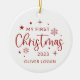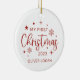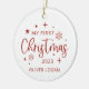 Festive Red Typography, min första jul, prydnadsföremål. Funktioner, malltext linjer för namn och år med matchande stöd för röd färg.