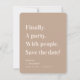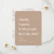 Slutligen kan du spara datumet med en enkel text i Party, Caramel Beige Minimalist. En modern enkel design belyser denna färg-redigerbara typografi! Slutligen. A party. Med folk. spara datumet! Med en söt marmor struktur på baksidan, men kan ersättas med ett eget foto. ~ Kolla min butik för att se hela bröllop-svit för den här designen!