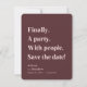 Slutligen en Party-enkel text Marsala Vin-minimalistisk spara datumet. En modern enkel design belyser denna färg-redigerbara typografi! Slutligen. A party. Med folk. spara datumet! Med en söt marmor struktur på baksidan, men kan ersättas med ett eget foto. ~ Kolla min butik för att se hela bröllop-svit för den här designen!