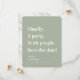 Slutligen kan du spara datumet genom att välja en Party-Grönt för enkel textsökning som är minimal. En modern enkel design belyser denna färg-redigerbara typografi! Slutligen. A party. Med folk. spara datumet! Med en söt marmor struktur på baksidan, men kan ersättas med ett eget foto. ~ Kolla min butik för att se hela bröllop-svit för den här designen!