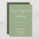 En bröllopsinbjudan till ditt långvariga uppskjutna bröllop. Du skickade ut spara datumen, byt data och ändra eventuellt data igen. Men nu är det äntligen här. Erkänn vad du och din gäst redan vet...Detta har dröjt länge. Inbjudan är mörk grönt och vit. Lägg bara till din information, lägg till inbjudan i din vagn och njut av bröllop som du har väntat på. Slutligen inträffar Bröllop Sage Typography Holiday Design | ©Melissa Patton - Designer