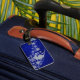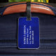 Denna är en underbar bagagemärkre för någon som älskar till sluttande skidar! Den presenterar en skier för silvergråttsnö med en kaskad av nätt silversnöflingor runt om honom. Avbilda förläggas på en livlig kunglig blåttlutningbakgrund. Baksidaen av märkren har din beställnings- text i silver, med den samma blåttbakgrunden.