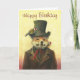 Kortet illustreras med en lätt Viktoriansk räv i top hat med två gyllene finkar på honom. Över springa texten Grattis på födelsedagen.