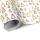 Celebrate the holiday season with this elegant and minimalist Christmas tree wrapping paper. The design features a whimsical scattering of geometric triangles in a festive palette of gold glitter, dusty rose, sage green, and soft grey, all set against a clean white background. Each triangle is outlined, resembling abstract Christmas trees, adding a touch of modern sophistication to your gift-giving. This unique wrapping paper is perfect for adding a stylish and festive touch to presents for friends and family, embodying the simple beauty of the holiday season with a contemporary flair. Make your gifts unforgettable with this chic and eye-catching design that's sure to impress.