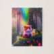 Färgrika, vackra, små, söta, söta, små, stutta husdjur med regnbåge Färg i en magisk skogskonst med Neon Färg. Färgfull katt Poster För barn rum, Baby rum, katter-pussel.