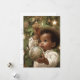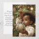 En liten svart baby/toddler iklädd vit pyjamas står framför ett vackert dekorerat julträd. Trädet är prytt med färgglada ornament och gnistrande ljus, vilket skapar en festlig atmosfär. Barnet verkar vara hypnotiserad av trädet, med en förundrad min i ansiktet. I bakgrunden utstrålar scenen en känsla av värme och julstämning. Bilden fångar ett magiskt ögonblick då ett barn upplever julens glädje och under.