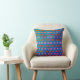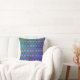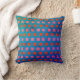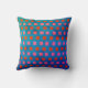 Uppdatera ditt rum! Dekorativ kudde har en geomtrik kvadrat mönster i rosa och orange mot en texturerad blå bakgrund. Klicka på Anpassa det om du vill lägga till ditt monogram eller namn och skapa din egen unika design av ett slag!