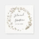 Med inspiration från elegant tuscany och italian flora, har den här elegant bröllop-servetten ditt namn och bröllop-datum, som härstammar från en garland med små små löv och vita blommor i en mjölkpalett med gröntar och elfenbensvita. Använda dessa tallrikar vid mottagningar, repetitionsmiddagar, förlovningsfester med mera.
