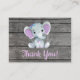 Tack för ditt kort/Märkre med Lila och Teal Elephant med blommor, söt liten jordnöt med blommor och buggar.