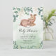 Könsneutrala djur baby shower inbjudningar med en söt akvarell mamma och bebis rådjur, eukalyptus grönska, guld blommor, och en elegant baby shower mall som är enkel att anpassa.