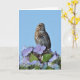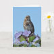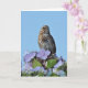 Lilla brun sångfågel sitta i vår blommor hälsningskort.