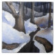 Den här bilden kommer från min ursprungliga vattenfärgsmålning av ett litet bäck längs fält kant bakom mitt hus. Kvällens vatten såg så mörk ut i kvällsljus att kontrasten mot snö krävde en målning.