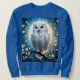 Bild framför en hel måne på Träd Gren är en vit Uggla Snö med Gnistra.