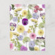 Vykort för ett Little Wildflower är på väg eller en Baby In Bloom baby shower tema. Vacker blomsterinspirerad design med söta spridda tusenskönor, ormbunkar, penséer och fler vilda blommor i en mjuk pastellfärg, övergripande design. Sök efter "Wildflowers" i min butik för att hitta kompletterande artiklar.
