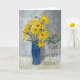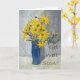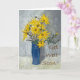 Ett kort för "gott snart" med en blå vas av guldblommor, från en originalmålning av olja från Judy Adamson. Blanka för ditt eget meddelande. Se även födelsedag- och tackkort med den här designen.