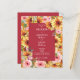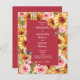 Solblommor och rosa ros med QR-OSA på inbjudan till budgetbröllop på baksidan.
