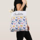 Vackert eget namn Tote Bag med en färgstark vattenfärgsfjäril mönster. Sömlös Tote Bag personlig namn med känsliga fjärilar i rosa, lera, gult och blått.