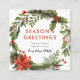 Festive vattencolor wandeut i stor layout med fet "Season's Greetings" i rött namn i skript över vitt kort. Tillsätt anpassningsbar- stegring och år på andra sidan med fast, vit utandning som täcker festivt rött affärskort.