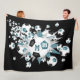 Den här roligtens fotvårdsfilt har en "explosion" av olika storleka teal, svartvita fotbollar och grått-, teal- och vita stjärnformer på en anpassadets svarta bakgrund - några av fotbollar typiskt svarta paneler har färgats om teal - anpassat med idrottsmannens namn, monogram- och jersey-nummer - katz_d_zynes