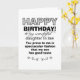 Dotter i juridik bevisar sonens bra smak, säger framsidan av detta roliga födelsedagskort. Kortet var utformat med en svärmor eller far i åtanke som önskemål skulle lägga till humor till sin sons fru när hon firar att hon blir äldre med ett år. Det söta budskapet på insidan förkroppsligar den söta komplimangen på framsidan i en smygande, men chockerande humoristisk självkomplimang som kommer att få dotterns eller sonens make/maka att skratta högt.