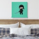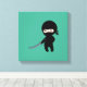 Cute, men arg tecknad ninja klädd i svart håller ett traditionellt japanskt katana-svärd.