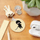 Cute, men arg tecknad ninja klädd i svart håller ett traditionellt japanskt katana-svärd.
